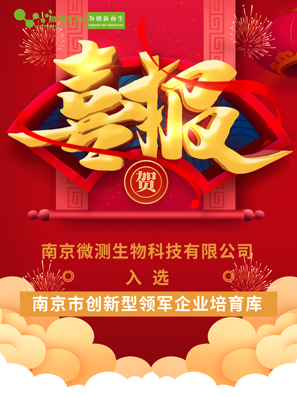 南京微測(cè)生物科技有限公司成功入選2021年度南京市創(chuàng)新型領(lǐng)軍企業(yè)培育庫入庫企業(yè)榜單。